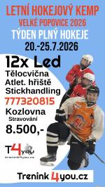 Ahoj všem z T4you, nabízíme další ročník kvalitního hokejového kempu ve Velkých Popovicích, pod vedením zkušeného trenéra se zkušenostmi z tréninku z extraligového klubu. TERMÍN - 20.7. - 25.7.2025 - Velké Popovice 14. ročník našeho kempu je vhodný pro věkové ...